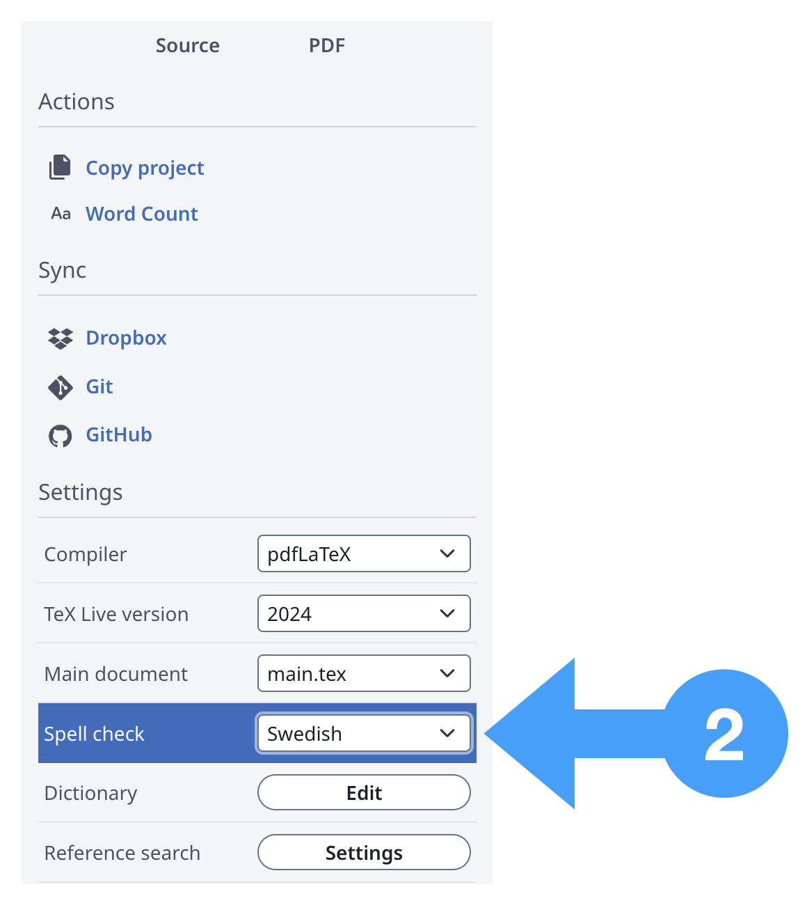 Välj sedan Swedish som språkk för Spell Check (2).